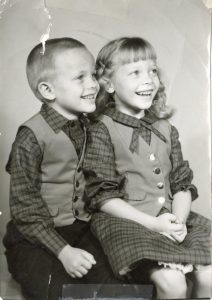Denise brought in this damaged photo of her with her twin brother. She had us restore and reprint it on the occasion of their 60th